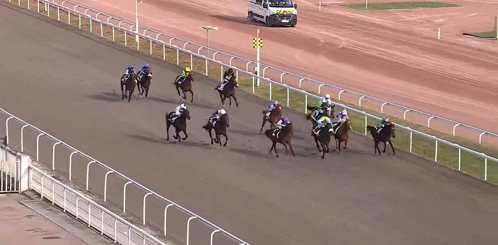 Ještě blíže vítězi byla stejně stará No Limits (Olympic Glory) stáje Leram. Druhé ze Slovenského derby se sice v Prix du Port de l'Eoube (Classe 3, 3, 2000 mAW, 16.500 €) moc nevyvedl start, ale v cílové rovině rozbalila finiš, kterým na se posledních metrech přiblížila vítězné GLAVIA (Le Havre) na půldruhé délky, ve vyrovnaném doběhu to však bylo páté místo.