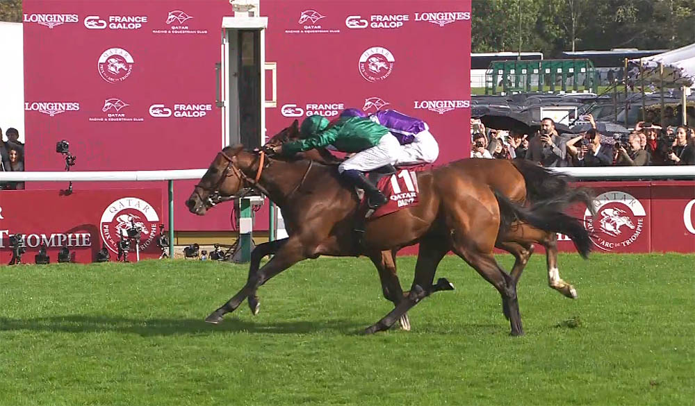Po loňském úspěchu anglické Bluestocking (Camelot) letos zůstal nejbohatší evropský dostih Prix de l'Arc de Triomphe (Gr.1, 3+, 2400 m, 5,000.000 €) doma. Po boji s favorizovanou Minnie Hauk (Frankel) se prosadil tříletý DARYZ (Sea The Stars) s Mickaelem Barzalonou, reprezentující Aga Khanovy barvy.