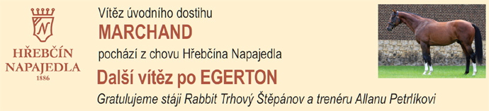 V Lysé nad Labem pokračovali ve vítězné formě trenér Allan Petrlík a stáj Rabbit Trhový Štěpánov. Včera ve Slušovicích na proutěných překážkách dominoval jejich Montjeu Third (Pop Rock) a dnes v 1. dostihu (3+, IV. kat., 2200 m, 30.000 Kč) se prosadil jeho tříletý polobratr MARCHAND (Egerton - Rabbit Montjeu, Montjeu), který za asistence Nikoly Petrlíka v cíli porazil o třičtvrtě délky polosestru třetího ze Slovenského derby Res Jucidaty (Jukebox Jury), Reine d´Argent (Kendargent). Třetí v cíli byl také kůň, který se může pochlubit výborným starším sourozencem. Klisna Touch Of Australia (Australia) je totiž polosestrou dvojnásobného vítěze derby Touch of Genia (Galileo).
