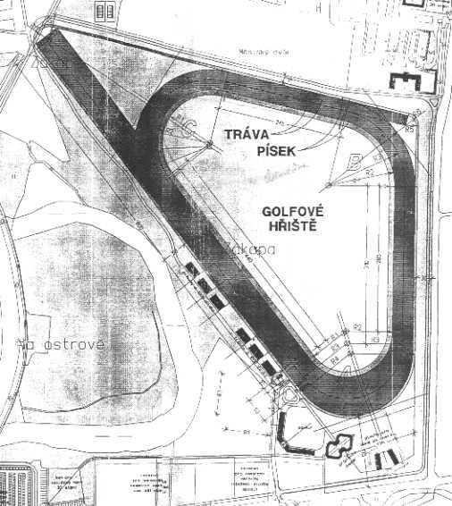 FOTO: Projekt dráhy v Oloumouci s přímou dráhou dlouhou 1100 metrů z let 1996 – 1997. Projekt byl inspirován závodištěm v Melbourne a dalšími zahraničními dráhami