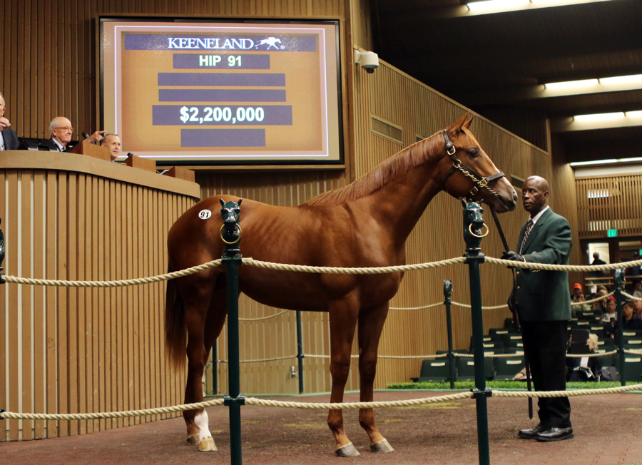 Klíčovým momentem letošní dražby byl návrat šejka Mohammeda, respektive jeho stáje Godolphin, po takřka desetileté pauze. Tato skutečnost, společně s faktem, že už neplatí šejkův bojkot ročků po coolmorských plemenících, se zasloužila o nejvyšší cenu úvodního dne. Postaral se o ni lot 91, ryzák z prvního ročníku vítěze americké trojkoruny American Pharoah (Pioneerof the Nile) z blacktype vítězky, několikrát umístěné v grupových dostizích klisny Kindle (Indian Charlie), za kterého stáj Godolphin, která se o něj přetahovala s týmem kolem Coolmoru, zaplatila 2,2 miliónu dolarů. Roček přinesl skvělý profit pinhookerovi O'Callaghanovi, který jej jako odstávče koupil za 400 tisíc dolarů na Keeneland November Breeding Stock Sale. "Byla to nejvyšší cena, jakou jsem kdy za hříbě zaplatil," uvedl krátce poté, co se mu splnil sen všech pinhookerů - že o jejich ročka se budou na dražbě prát dva největší investoři na trhu s nejrychlejší krví.