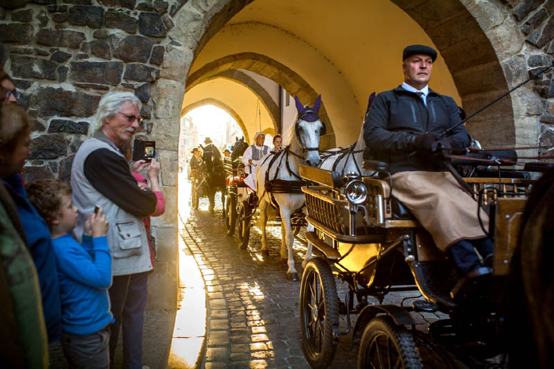 Průvod kočárů, koní a jezdců se vydá z Pardubického závodiště už o hodinu dříve. Po ulicích Teplého a 17. listopadu projede třídou Míru, aby Zelenou branou vjel na Pernštýnské náměstí. A protože téma letošní výstavy je historické a majestátní – Ve jménu krále, nebudou chybět ani dobové kostýmy.